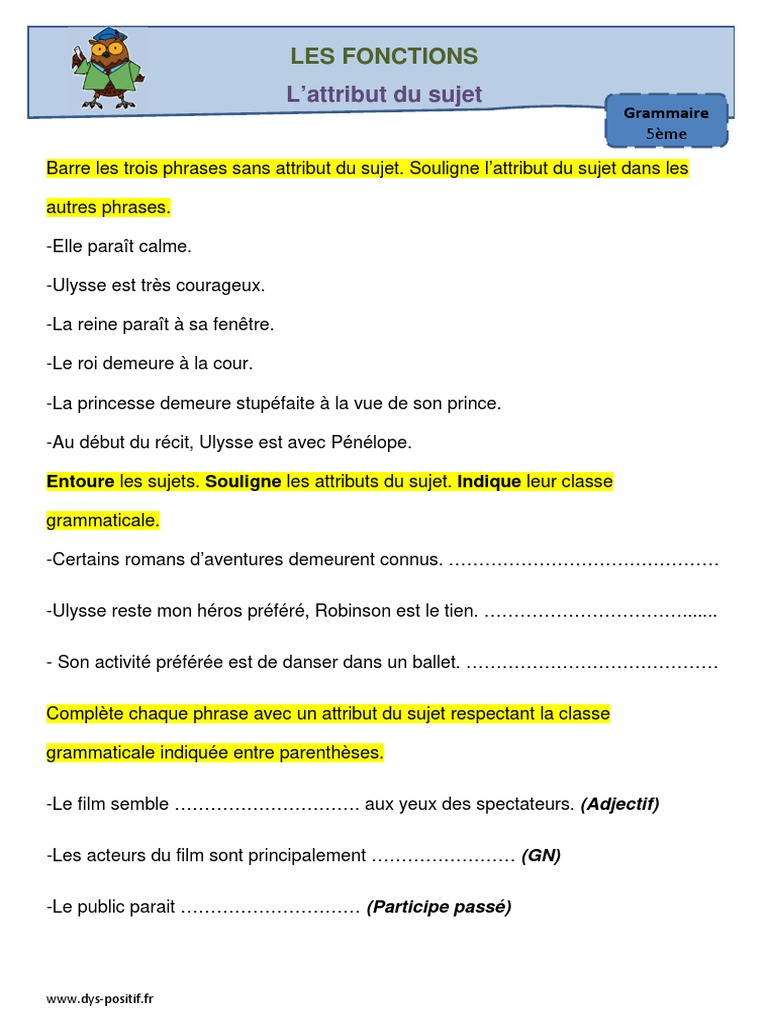 L Attribut Du Sujet Exercices 4 Alloschool