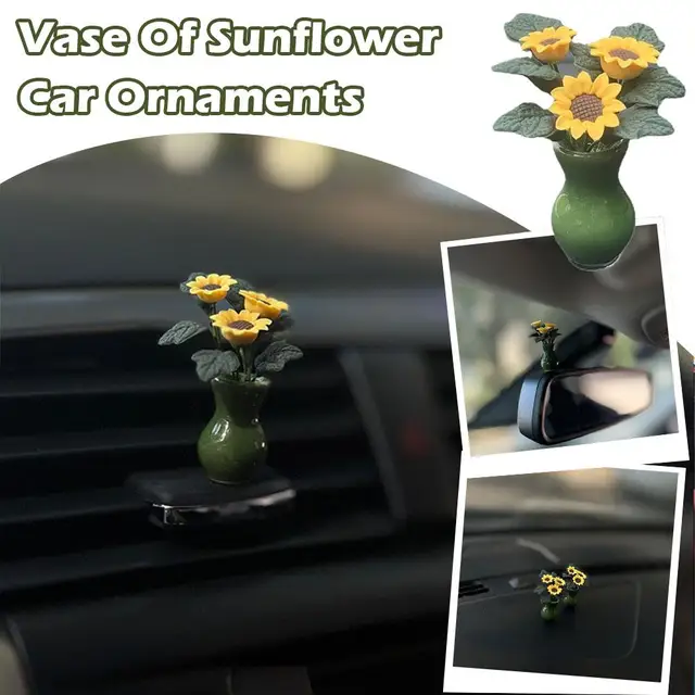 The New Mini Dark Green Vase Sunflower Car Ornaments Car Center Interior Literary Office Cure Console Decoration Retro Hand W8o9 Aliexpress